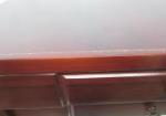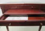 This lovely Archive Marshall Field's craft table has four drawers and a surface work space that opens up to reveal a crafting area complete with organizing sections to hold your craft materials. This desk measures 27"W X 18"D X 32"H. When extended the width extends to 54". This item is in used, good condition due to small scratches along the edge of the piece. Please preview. This is a reproduction desk and was assembled prior to photographing.