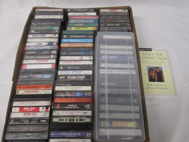 #3 This large box of cassette tapes features a variety of genres and artists. Artists include “Jefferson Starship “, “Irish Tenors”, “Leann Rimes”, “Jethro Tull” and more. These items are in used, good condition. Please preview.