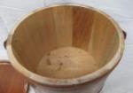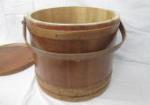 Vintage 15" "firkin" or a type of small wooden bucket or barrel. Firkins were historically used for storing dry goods such as sugar, flour, or butter.