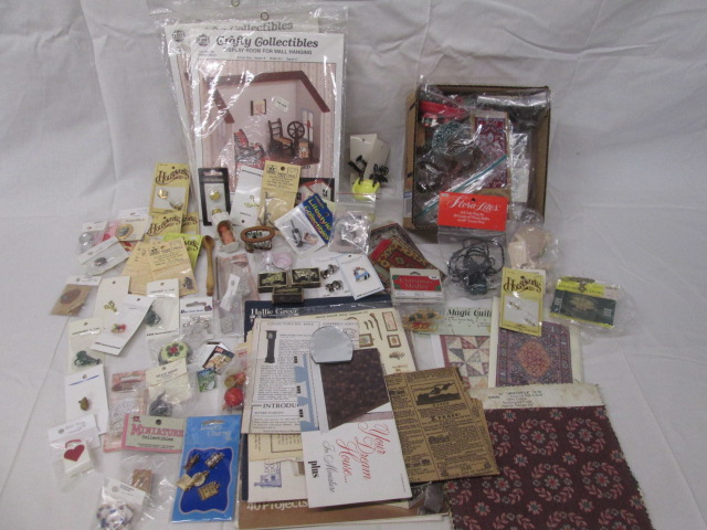 This large collection of miniature, doll house items includes rugs, bathroom items, dishes, household items, Christmas decorations, furniture and more. These items are in new and used, good condition. Please preview.