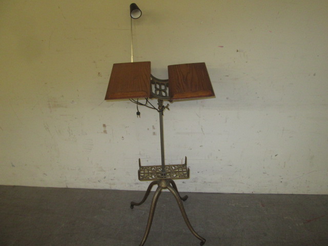 This gorgeous 41" antique Victorian style cast metal and oak music/Bible stand (lectern) is in good condition. A light has been added to the piece. Please preview.