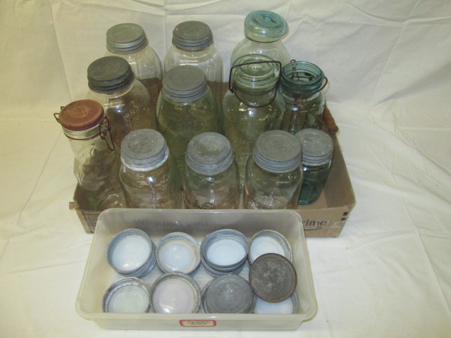 This assortment of twelve Mason/Ball/Kerr jars with lids and fourteen additional mason lids are in vintage, good condition. Please preview.