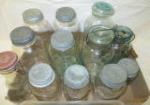 Assortment of twelve vintage Mason/Ball/Kerr jars with lids and fourteen additional mason lids.
