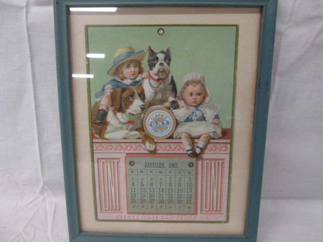 Charming framed "Clark's O.N.T. 1885 advertising calendar.