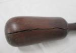 This gorgeous antique, 9" dark wood mortar and pestle is in used, good condition with a thin surface crack on the base of the piece. The pestle is also cracked. Please preview.