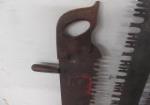 This assortment of four vintage saws includes blades from three, two-person symmetrical saws also known as "misery whips" and a crosscut saw. The "misery whips" do not have the handles. These items are in used, good condition. Please preview.