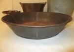 This selection of metal items includes two metal ash pails, a large 14" metal pan and a small metal enamel pan. These items are in used condition. Please preview.