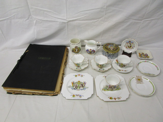 "Long Live The King". Gorgeous selection of (sixteen) collectible pieces of Royal commemorative china including a Victorian Prattware pot and lid featuring a transfer print of Queen Victoria (this piece does have chips), a 1953 Spode coronation mug, a 1937 coronation creamer featuring King George Vl and Queen Elizabeth, a 1935 Jubilee cup, two commemorative plates and more. This assortment also includes an interesting scrap book following the history of celebrations of the Royal Family.