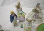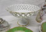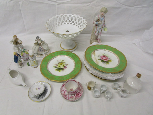 Nice collection of porcelain pieces including a 5" Andrea by Sadek figurine playing the violin, a vintage Victorian figurine, a porcelain fruit bowl, seven stunning Coalport porcelain dessert plates and more.