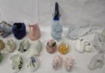 Darling collection of twenty porcelain swan figurines. These collectibles includes a Cordelia porcelain swan, an Adderley English bone China swan, an Elfinware porcelain decorative swan and more. Also included is a 7" blown glass pelican figure and a glass whale figure.