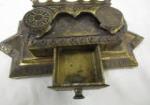 This heavy, antique 5" cast metal Bradley and Hubbard double inkwell and pen stand (model # 6062) is in previously owned, very good condition. Please preview.