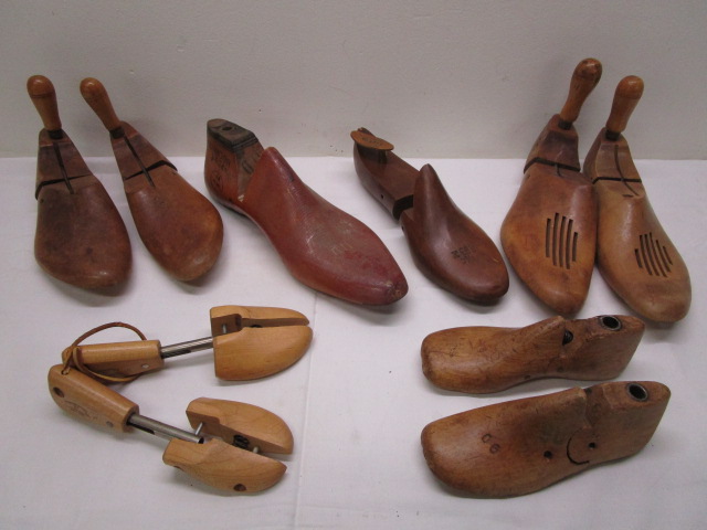 Collection of vintage wooden shoe stretchers (also called shoe lasts) including the following brands: Fenmoor, Rochester, Miller and more.