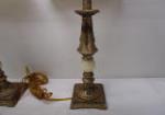 Lovely pair of 28" Stylecraft brand table lamps featuring ornate gold toned bases, marble accents and tassel lampshades,