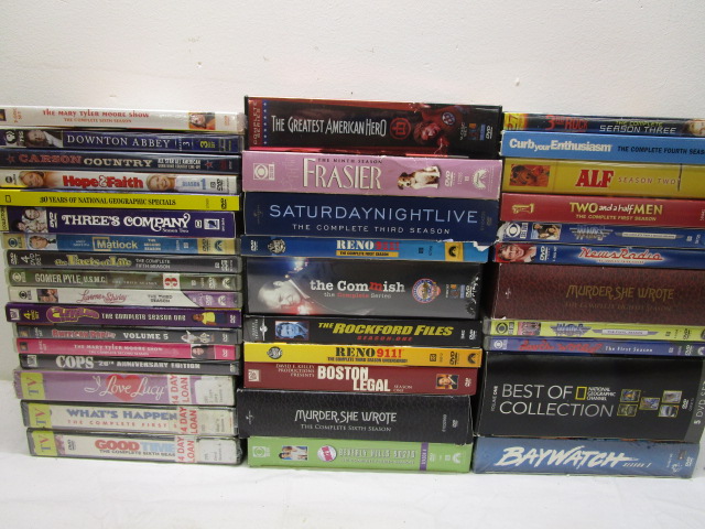 This collection of 38 DVDs/DVD sets features a variety of television series including "Frasier", "Alf", "Saturday Night Live" and more. These DVDs are in previously owned, good condition. Please preview.