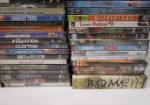 Large collection of over seventy DVD's, eleven Blue Ray DVD's, and three HD-DVD's including a variety of genres and titles. Titles include "Troy", "Bad Girls", "Peter Pan", "Gladiator" and more.