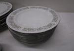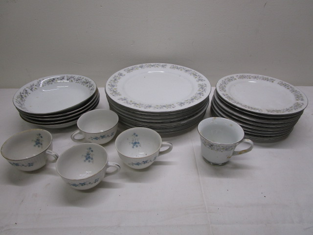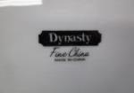 This partial dinnerware set of Dynasty China includes eight 8" salad plates, eight 10-1/2" dinner plates, five 8" bowls and a tea cup. Also included are four tea cups from the Yamaka China pattern. These items are in previously owned condition. Please preview.