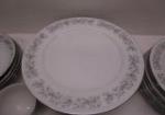Partial dinnerware set of Dynasty China. This partial set includes eight 8" salad plates, eight 10-1/2" dinner plates, five 8" bowls and a tea cup. Also included are four tea cups from the Yamaka China pattern.