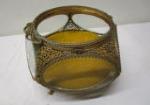 This lovely collection of vintage style brass and glass decorative items includes four candle stick holders (one matching pair), a gorgeous vintage Ormolu filigree jewelry "casket" featuring beveled glass, a Victorian-era jeweled jewelry box that once held LaTausca pearls and more. These items are in previously owned, good condition. Please preview.
