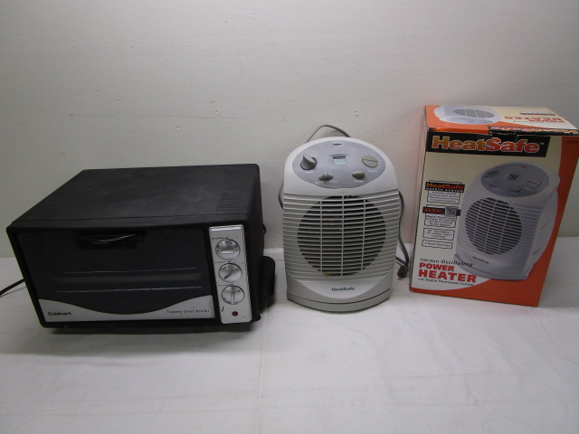 Pair of electronics including a Cuisinart Toaster Oven Broiler (model # TOB-30BW) and a HeatSafe brand oscillating 1500 watt digital, portable heater (model # HS5000).