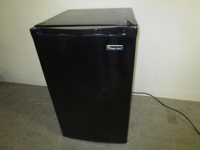 Magic Chef brand black mini-fridge (model # HMBR44OBE). This item measures 19-1/2"W X 22"D X 33"H.