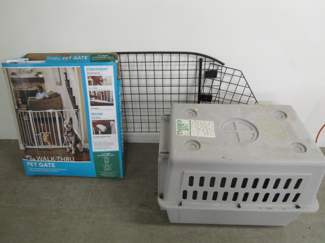 Petmate Large Animal Carrier, Pet Lodge™ Wire Auto Barrier and Walk Through Pet Gate.