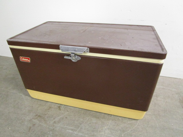 Vintage Coleman cooler, likely from the late 1960s to the 1970s, Steel Belted, Brown Color.