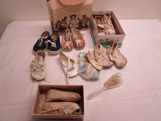 Great collection of Vintage Baby Shoes and Booties. Leather, Satin and Cotton, all in good vintage condition, please preview.