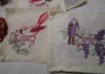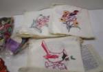 Beautiful assortment of hand embroidered linen napkins and squares with bag of Embroidery floss.