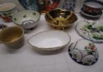 Beautiful random collection of China teacups, bowls and display plates produced in japan, Italy and england.