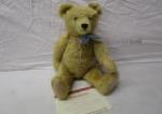 | Just out of hibernation, an adorable 15" 1951 Steiff Blond teddy bear (#00235). This bear includes its COA and is looking for a home. |