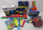 | Assortment of summer toys including a "Fubbles" bubble weed wacker, a set of Playday pickleball play set, a bag of new water balloons, a QPAU splash pad and more. |
