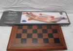 | Brookstone 3 ft tabletop cornhole game with wooden folding chess board. |