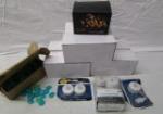 | Whimsical assortment of over forty glass and lucite figurines ranging in size from 1/8" to 4". These figurines feature a variety of animals including dogs, birds, ocean creatures and more. |