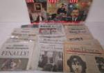 | 3 New England Patriots collectible footballs with a NC Trojans collectible football. |