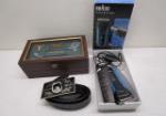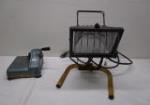| Pair of workshop items including a portable halogen work light designed for providing high-intensity lighting in a workshop or construction site. also included is a Bliss brand portable strip splitter. |