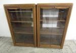 | Dark wooden home/office book case/display unit featuring four open shelves over two doors with two additional shelves. |