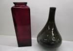 | Murano tall crackle art glass vase with brown speckles and tall Red rectangle vase. |