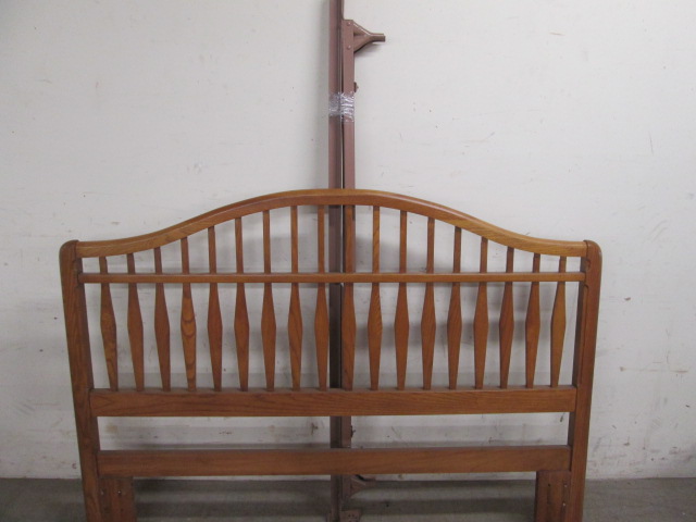 Oak queen size headboard with metal bedframe. Measures 62" x 45". Please preview.
