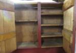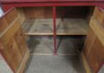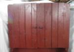 Antique primitive farmhouse "burnt red finish" cupboard cabinet with headboard construction. This item features two door storage over a work surface and two door storage below. The cupboard measures 38"W X 17-1/"D X 73"H. This item is in antique, good condition with some wear due to age. Please preview.