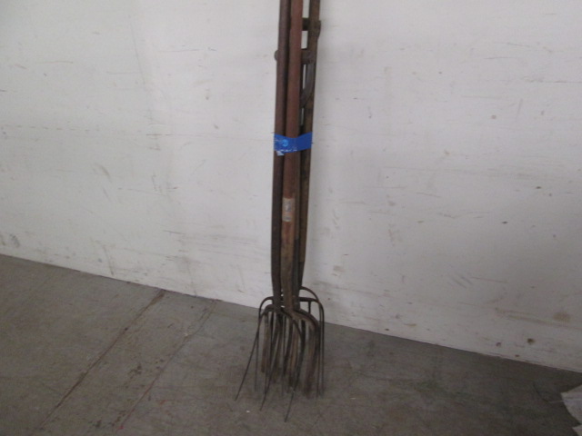 This selection of five vintage pitchforks (two short handled and three long handled) are in vintage, good condition. Please preview.