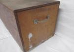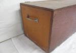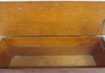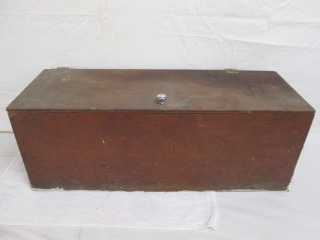 This hand made wooden tool box measures 29-1/2" X 10-1/2" X 11". This piece is in used condition. Please preview.
