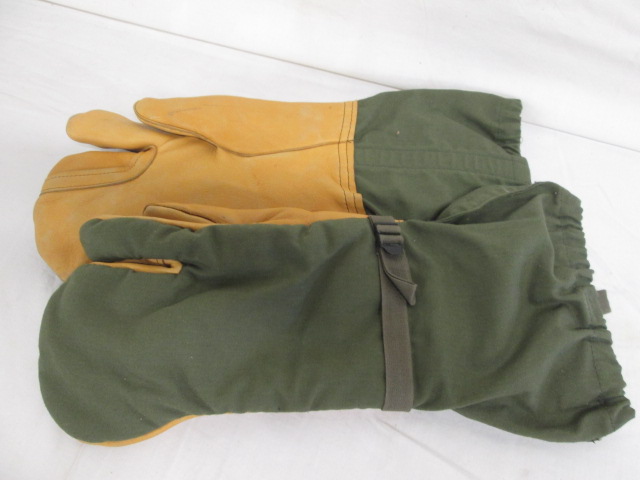 This pair of US Military M-1965 Cold Weather Trigger Finger Mittens are a size M mitten with a size L shell. These items are in used, very good condition. Please preview.