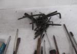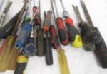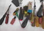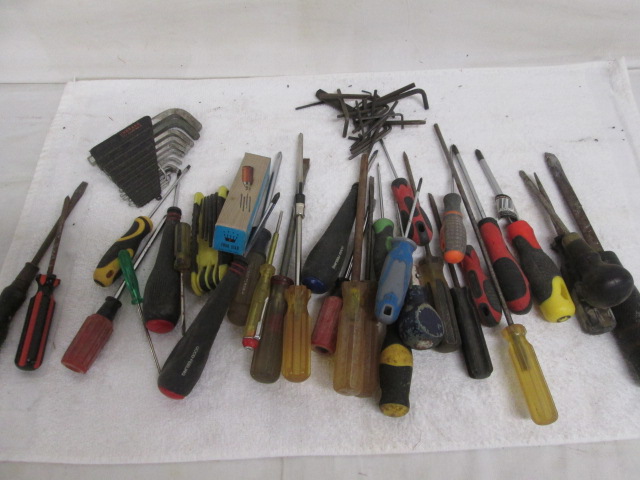 This selection of modern hand tools includes several Craftsman brand screw drivers, two Allen wrench sets, and more. These items are in used condition. Please preview.