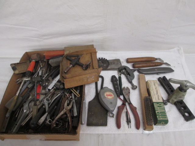 This collection of tools includes files, small levels, a Rigid flaring tool, wire cutters, clamps and more. These tools are in used, good condition. Please preview.
