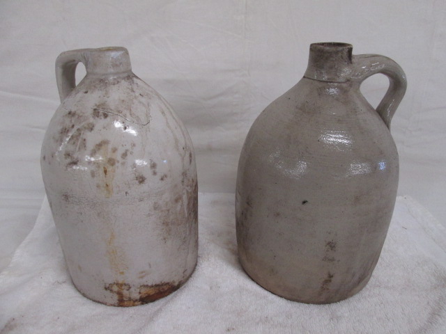 Pair of vintage 11" rustic stoneware jugs.