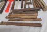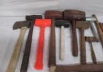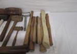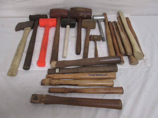 Eight mallets, (wooden, rubber and metal), twelve handles and one hatchet.