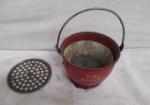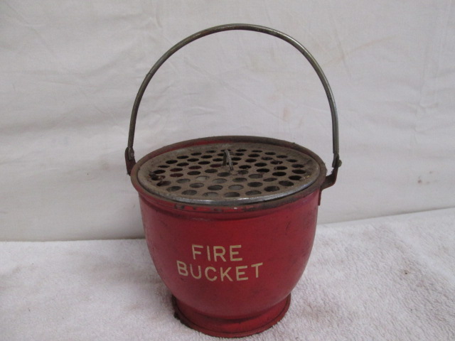 This interesting vintage 5" Fire Bucket ash tray with handle was designed to resemble a true fire bucket. This item is in vintage, used condition. Please preview.