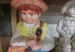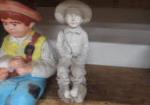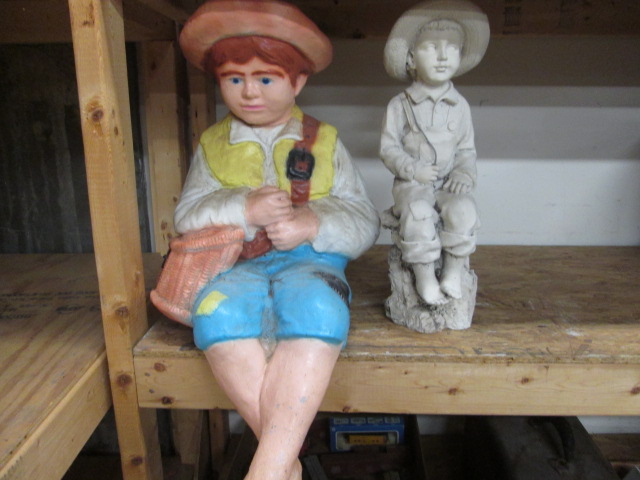 This adorable pair of outdoor decor pieces features a heavy 28" vintage statue of a boy, possibly depicting Tom Sawyer or Huck Finn and a 19" plastic statue of a boy fishing. The 28" statue is missing the fishing pole and does have some wear due to age. The 19" statue is in used, good condition. Please preview.
