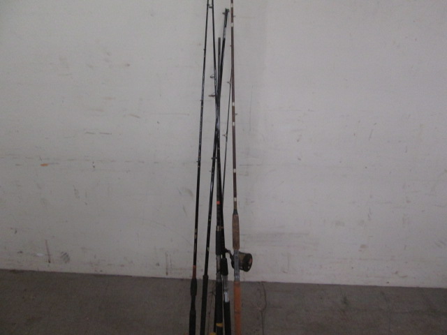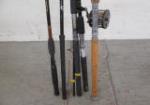 The season isn't over yet. This collection of five fishing poles includes a "Shakespeare Ugly Stick" rod, a "Zebco Pro-Staff" rod, a "Shakespeare Bald Eagle" rod and reel and more. These items are in used, good condition. Please preview.