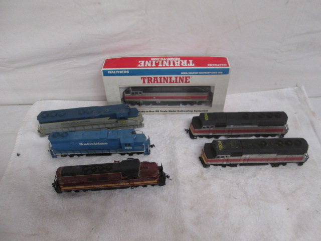 This assortment of six model train cars includes two (one new) Walthers Trainline deluxe ready to run HO scale model railroading engines, a Delaware and Hudson engine, a "Life Like Boston and Maine" engine and more. These trains are in used, good condition unless otherwise noted. Please preview.